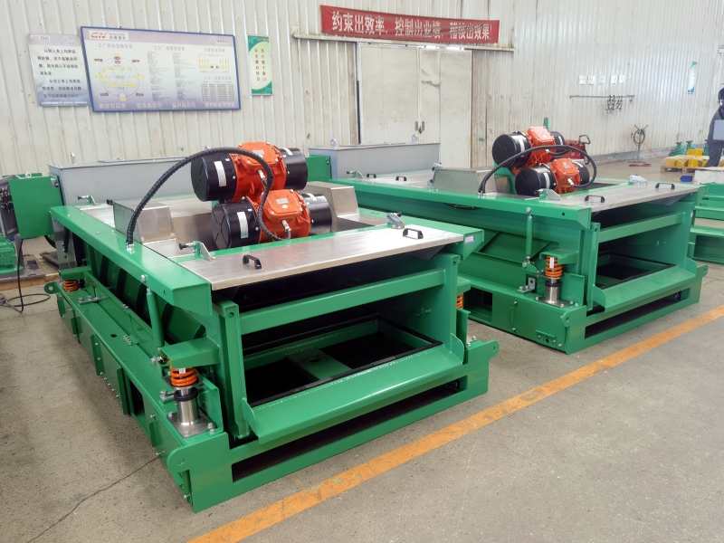 上周,冠能固控為某知名中國鉆井公司供貨了3臺防飛濺鉆井液振動篩和1臺泥漿清潔器。滿足鉆探泥漿環保防飛濺處理。1、冠能鉆井液振動篩 冠能振動篩選用的是意大利OLI或者美國馬丁電機,電器元件選用的是西門子施耐德。重負載設計,篩箱整體熱處理,振動強度可達8.0G,滿足各工況的使用。振動篩主要用于一級篩分,分離100um以上的固體顆粒,同時還可以通過調節振動篩篩網的目數來調節篩分顆粒的大小,同時可以根據客戶要求做成雙聯篩,通過泥漿分配器將泥漿分配給兩臺振動篩同時處理,提高處理量。此次供貨的振動篩進行了防飛濺設計,有效防止物料飛濺,減少了泥漿浪費,同時保護現場作業環境,滿足業主需求。