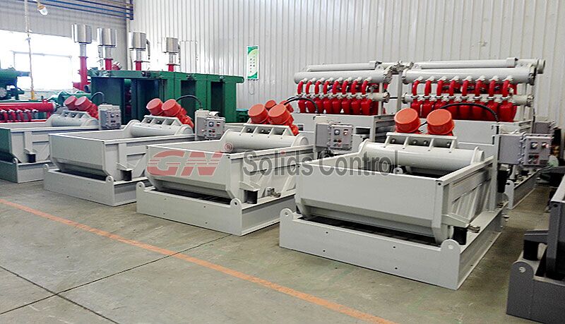 1500gpm泥漿系統包含以下項目: 1)3臺500gpm處理量的振動篩,型號為:gnzs703e-dz,總處理量為1500gpm 2)1臺處理量為1500gpm的泥漿清潔器,型號為:gnzj703e-3s16n 3)1個帶振動篩和泥漿清潔器的泥漿回收罐 4)1個帶泥漿攪拌器,泥漿槍的儲漿罐,用于儲存和混合泥漿。冠能固控可以根據不同需求提供小型或大型泥漿循環系統。200gpm泥漿回收系統,350gpm泥漿循環系統,500gpm泥漿循環系統,1000gpm泥漿循環系統,1500n泥漿循環系統,如果你有需求,請隨時與冠能固控聯系!