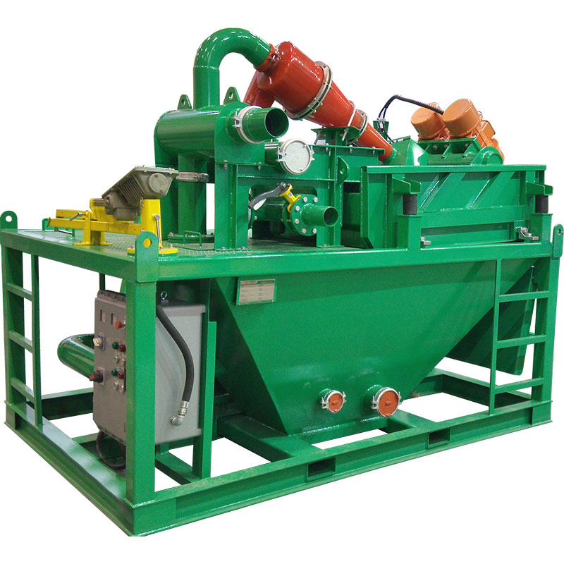 2、泥漿清潔器(除砂除泥一體機(jī)),用于第二和第三階段的固控設(shè)備,下面安裝的振動(dòng)篩與庫(kù)存的振動(dòng)篩型號(hào)相同,篩網(wǎng)及配件可以進(jìn)行互換。